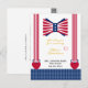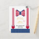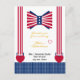 Celebrate in style with these trendy "Red White and Blue Bow Tie and Suspenders 4th Of July" baby shower thank you cards.