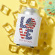 Create your own double-sided patriotic can cooler designed with red, white, and blue American flag/stars and stripes typography and a hippie peace sign. Text says "Love". Personalise with your own text which can be your name or anything you choose. Perfect for your Independence Day/4th of July festivities. Contact me for assistance with customisation or to request additional matching or coordinating Zazzle products.