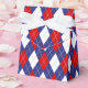 Red, White and Blue Argyle, 2-PARTY FAVOR BOXES, tent style-An allover diamond shaped pattern created in patriotic red, white and blue colours. The diamond shapes alternate in all three colours. The digital stitching is white. This design is suitable for certain holidays as well as many other occasions through out the year. The pattern coordinates with others in a complete red, white and blue party theme. You can find argyles, chevrons and even homespun to coordinate, mix or match. Choose any style of Zazzle party favour boxes.
