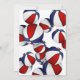 This basketball themed party invitation for a birthday (or team) party features clusters of red, white and blue basketballs at the top and bottom edges on the front and a single cluster covering the back of the invitation - customise the party details on a white background - by katz_d_zynes