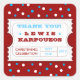 CUSTOM thank you sticker in a red, white, and bright blue carnival / circus admission ticket design.