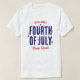Now you can commemorate this year's Fourth of July in style with a personalised t-shirt! Show off your patriotic spirit with 'Fourth of July' written in a bold font, accompanied by charming red and blue stars. Customise the shirt further by adding your family name or 'Family Reunion' -- perfect for your summer gathering with the ones you love. Celebrate Independence Day like never before with this special edition t-shirt!