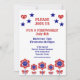 Red, white and blue patriotic flower and blue stars Invitation to kick off your 4th of July get together. Personalise this with your own July fourth holiday party details. This summer re-unite with friends and family to celebrate this great country and have fun with fireworks and a great BBQ