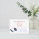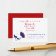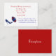 Fun football themed wedding invitation enclosure card done in white, on the front, and red on the backside. Graphics of a blue high heel kicking a red, white, and blue football decorates the bottom left front of the card. Text in red and blue on the front, and white, on the back, is ready to personalise with your wedding information. Great addition to our Patriotic football themed wedding set.