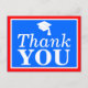 Send out this Red White Blue Grad Cap Thank Your Postcard to all who supported and encouraged your school career. It features a grad cap and a classic font in striking red, white, and blue school colours. Write your personal letter on the back.