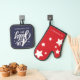 Patriotic Red White and Blue Independence Day 4th Of July theme with family name oven mitt and pot holder set. Makes a great gift or addition for this Independence Day 4th of July cook out.