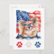 Embrace the 4th of July with our Red White and Blue Long-Hair Chihuahua Dog American 4th of July Postcard This patriotic 4th of July outfit array stars a Long-Hair Chihuahua adorned with the American flag. Surrounding this proud pup are playful dog paws in vibrant red, white, and blue, each adding a festive touch. The blue paw boldly features the word WOOF, capturing the joyful essence of canine companionship and patriotic pet. This dog Fourth of July design combines patriotism with the love for dogs uniquely and festively. Great 4th of July Dog design for an Independence Day party to celebrate with family and friends. Funny family 4th of July postcard idea!