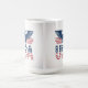 A patriotic American design featuring a stylized eagle silhouette in blue with spread wings against a white background. The eagle's body is filled with red and white stripes, and its head has a white tuft. Below the eagle, the text USA is rendered in blue letters, each letter decorated with white stars. The letters are flanked by red and white stripes on either side, creating a mirror effect. The entire design uses the colors of the American flag - red, white and blue - and maintains a clean, modern graphic style. The eagle's wingspan fills the top third of the design, while the USA text occupies the bottom two-thirds. When you fill the mug with a hot drink the image will morph.