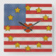Red, White, Blue - Polka Dots Stars and Stripes Square Wall Clock