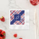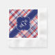 Shades of Red, White and Navy Blue Preppy Madras Style Plaid Pattern, Navy Blue Quatrefoil Monogram