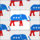 This red, white, and blue pattern features an illustrated version of the republican elephant. Show your patriotic side with this pattern.