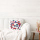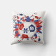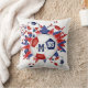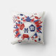 This fun girl's soccer throw pillow features an "explosion" of varied size red, white and blue soccer balls and red, blue and white star shapes - the soccer balls' typically black panels have been recolored red and blue - customise with athlete's name, monogram and jersey number on the front and back - katz_d_zynes