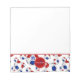 This sporty soccer balls notepad features randomly arranged red, white and blue traditional style soccer balls of varying sizes at the bottom edge of the notepad - white background is customisable, as is her name and monogram on a coordinating red circle pendant and jersey number on one of the soccer balls - by katz_d_zynes