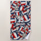 This cool volleyball beach towel, suitable for her or him, features a seemingly endless pattern of volleyballs in varying sizes and at varying depths, turned every which way - some of the volleyballs have red and blue panels - player name and jersey number are customisable - by katz_d_zynes