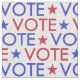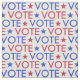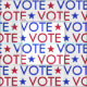 Vote fabric with VOTE written in clean letters in red and blue against a white background.