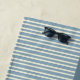 This red, white and blue beach towel is a playful patriotic twist. Featuring classic blue and cream stripes paired with a beautiful block print in shades of red and cream with star details.