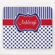 This modern red, white, and blue stripes with polka dots pattern mousepad has a template box for you to customise with your own name, initials, monogram, or other text. If you need any help customising this trendy mousepad, please email niteowlstudio@gmail.com.