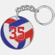 This sporty volleyball themed keychain for boys or girls features a realistic looking red, white and blue volleyball upon which you can customise the player's name, jersey number and court position, plus school or club name and mascot name in a varsity letter style font - by katz_d_zynes