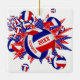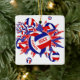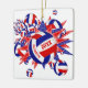 This cool volleyball themed ceramic ornament for girls or boys features an "explosion" of red, white and blue volleyballs in varying sizes and red, white and blue star shapes - customize with player's or fan's name and commemorative year on the front and back - katz_d_zynes