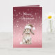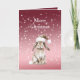Red White Bokeh Dots Christmas Bunny Rabbit Hat Card
