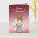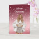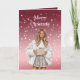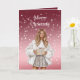 Red White Bokeh Dots Christmas Pretty Blond Girl Card