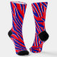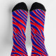 Step up your sock game with these **Red, White & Bold Tiger Stripe Crew Socks**—a wild splash of patriotism and power. The fierce **blue tiger stripes** with **white edges** on a **bright red background** bring energy and attitude to every step.