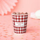 Get ready for a family reunion with paper cups featuring a classic red and white buffalo check pattern with up to 3 lines of text in a white rectangle in the centre. Personalise it with your name and text in the sidebar.