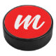 Red White Calligraphy Monogram Initial Letter Hockey Puck