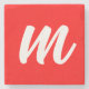 Red White Calligraphy Monogram Initial Letter Stone Coaster