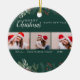 Elegant holiday photo ornament features watercolor green foliage and three favourite square photos. To make advance changes, please select "Click to customise further" option under personalise this template.
