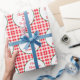 Red White Check MERRY CHRISTMAS Name Wrapping Paper