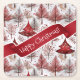 Red White Christmas Tree Pattern#4 ID1009 Square Paper Coaster