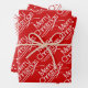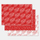 Red and white Christmas typography and dots holiday Wrapping Paper Sheets. The first sheet features the text "Merry Christmas" in white on red, the second white polka dots on red and the third the text "Merry Christmas" in red on white.