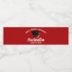 This modern red and white custom senior graduation water bottle label features classy typography of your university or college name for the class of 2025. Customise with your graduating year under the chic handwritten script and black grad cap for great personalised graduate labels.