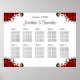 © Sunny Mars Designs- Floral Hibiscus: Red on White Wedding Seating Charts for Ten Tables - Trendy, stylish, modern, elegant, classy, chic customisable Gothic wedding table seating chart template with dark red, crimson, burgundy, ruby or maroon swirly tropical hibiscus floral design against a customisable white background.