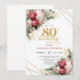 Red white floral gold accent card 80th birthday