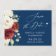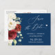 Red White Floral Navy Blue Wedding Save the Date Postcard