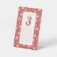 Red & white floral seating chart table # pedestal sign