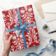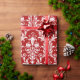 Red White Floral Swirl Damask Wrapping Paper