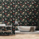 Red & White Flowers on Black for Bedroom Pattern Wallpaper