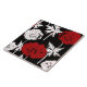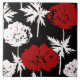 Red, white flowers on black . tile