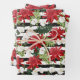 Red White Flowers on Black White Stripes Dots Wrapping Paper Sheet