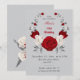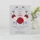 romantic red and white flowers botanical wreath on a grey background birthday invitation