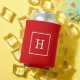Red White Framed Initial Monogram Can Cooler
