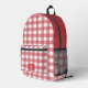 Red White Gingham Pattern Monogram Custom Printed Backpack