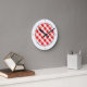 8" round wall clock designed with a red and white diagonal gingham pattern, and small grey circles to indicate the 3, 6, 9, and 12 o'clock hour positions. You may also upgrade to the 10.75" diameter wall clock.