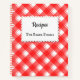 Red White Gingham Plaid Custom Recipe Book