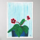 Painting of a red and white gloxinia flower in a blue flower pot, printed on posters. Can be customised. The gloxinia is in the African Violet family.