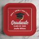 Red White Graduate 2025 Graduation Party Square Paper Plate