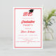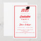 A modern and stylish invitation for a graduation party. For both him and her. White background, red text and a frame. A black graduation cap.